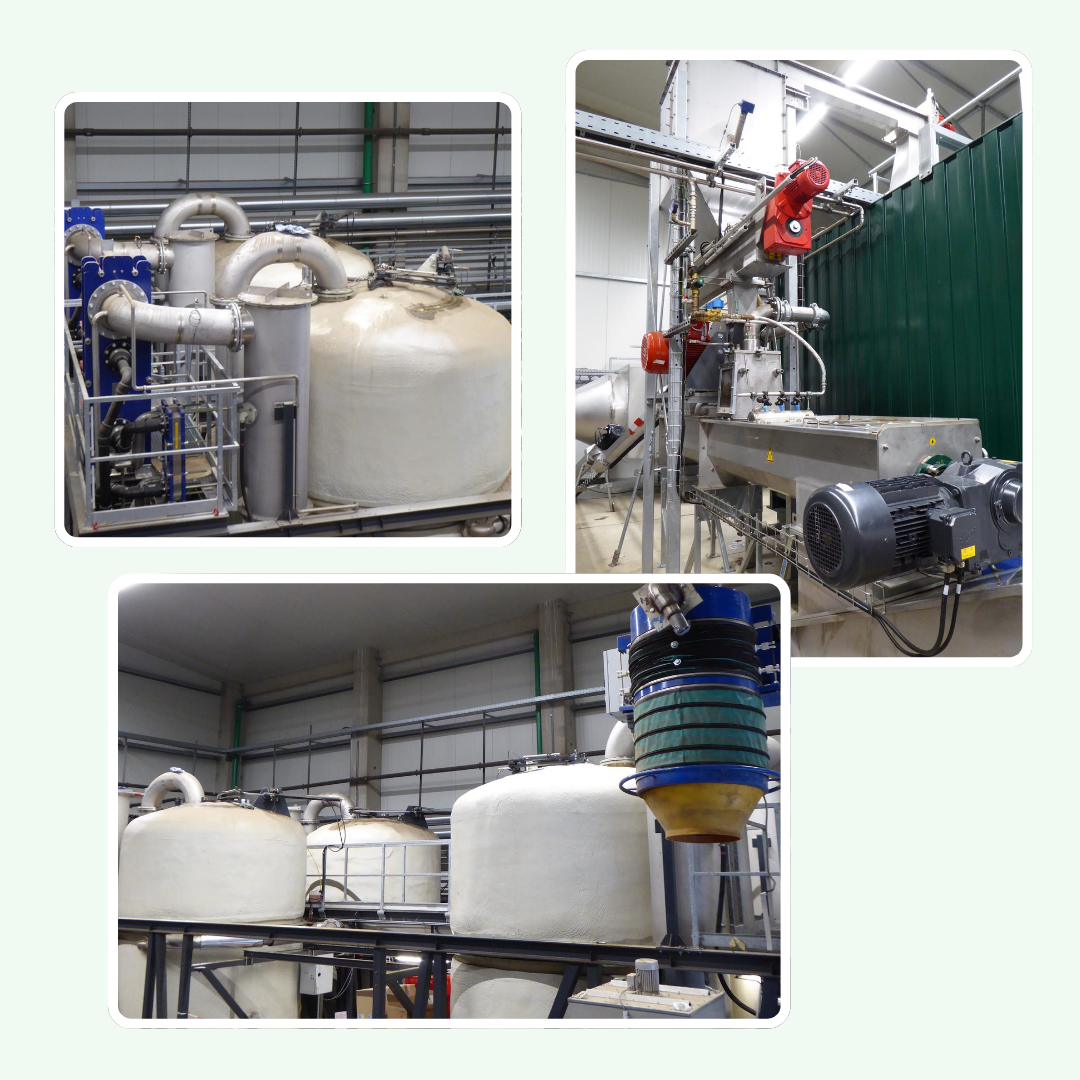 In unserer Gärproduktaufbereitung entziehen wir dem Material Wasser und gewinnen daraus die Grundlage für unseren RASENBLITZ™. Aus dem eingedickten Rest entsteht unser festes Biodünger-Granulat NATURTALENT™.