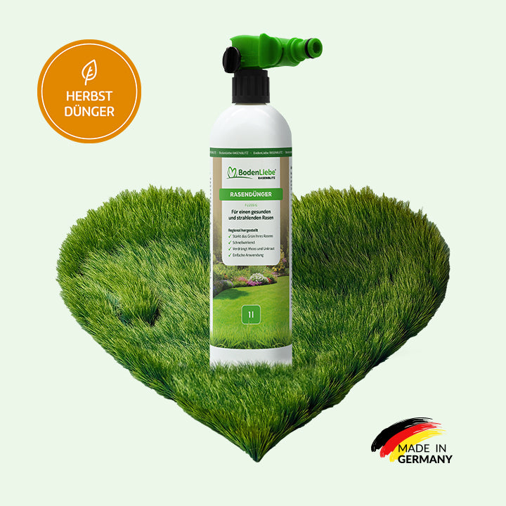 Unser flüssiger Rasendünger wird in Deutschland aus hochwertigem Bio-Gut und Grüngut hergestellt – für eine nachhaltige und umweltfreundliche Rasenpflege.